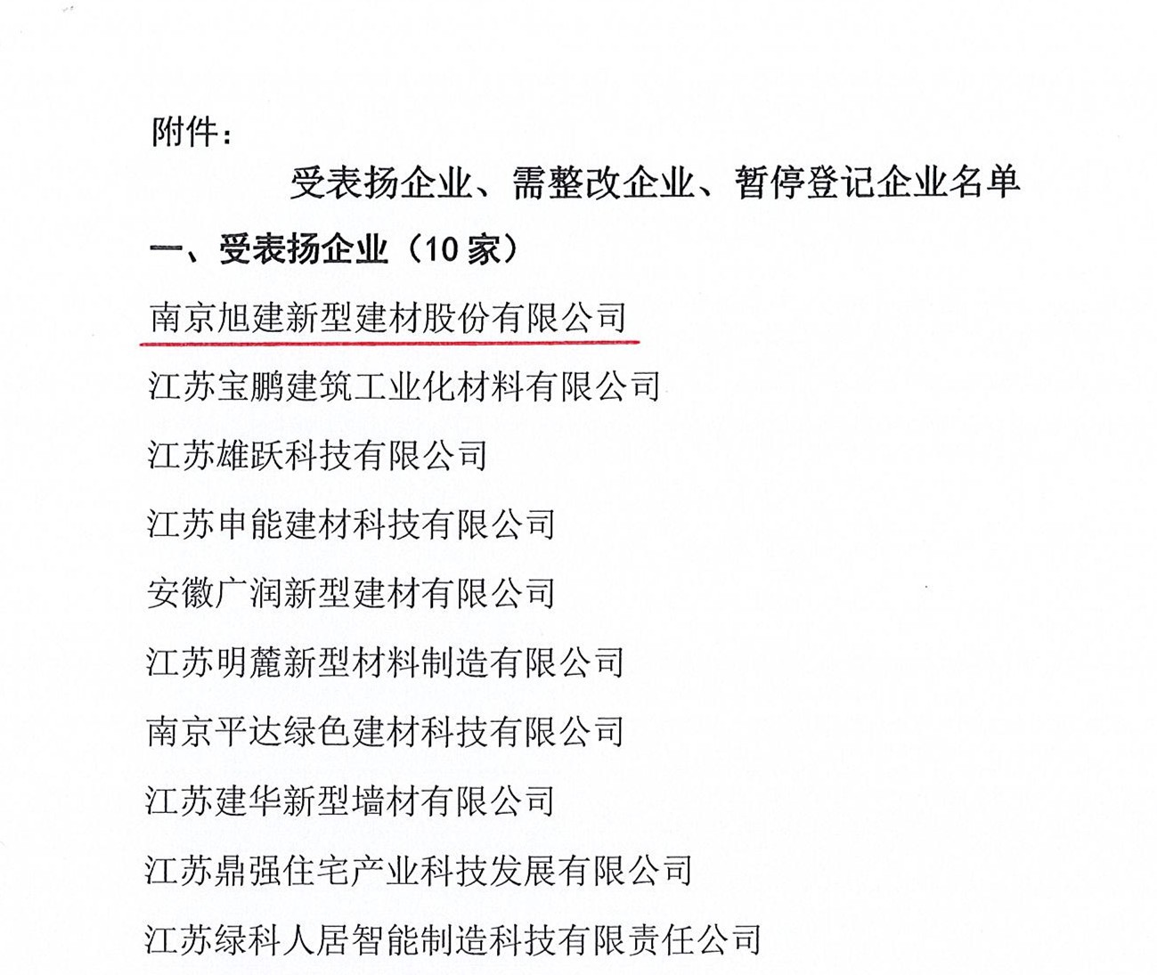 • 南京旭建公司榮獲江寧區建筑產業現代化研究會受表揚企業